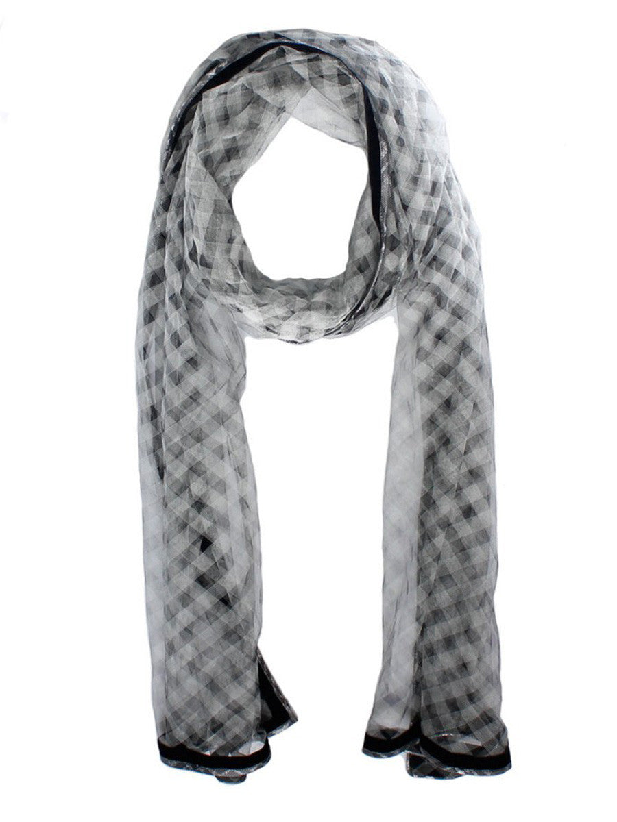 Checkered tulle with velvet trim scarf.